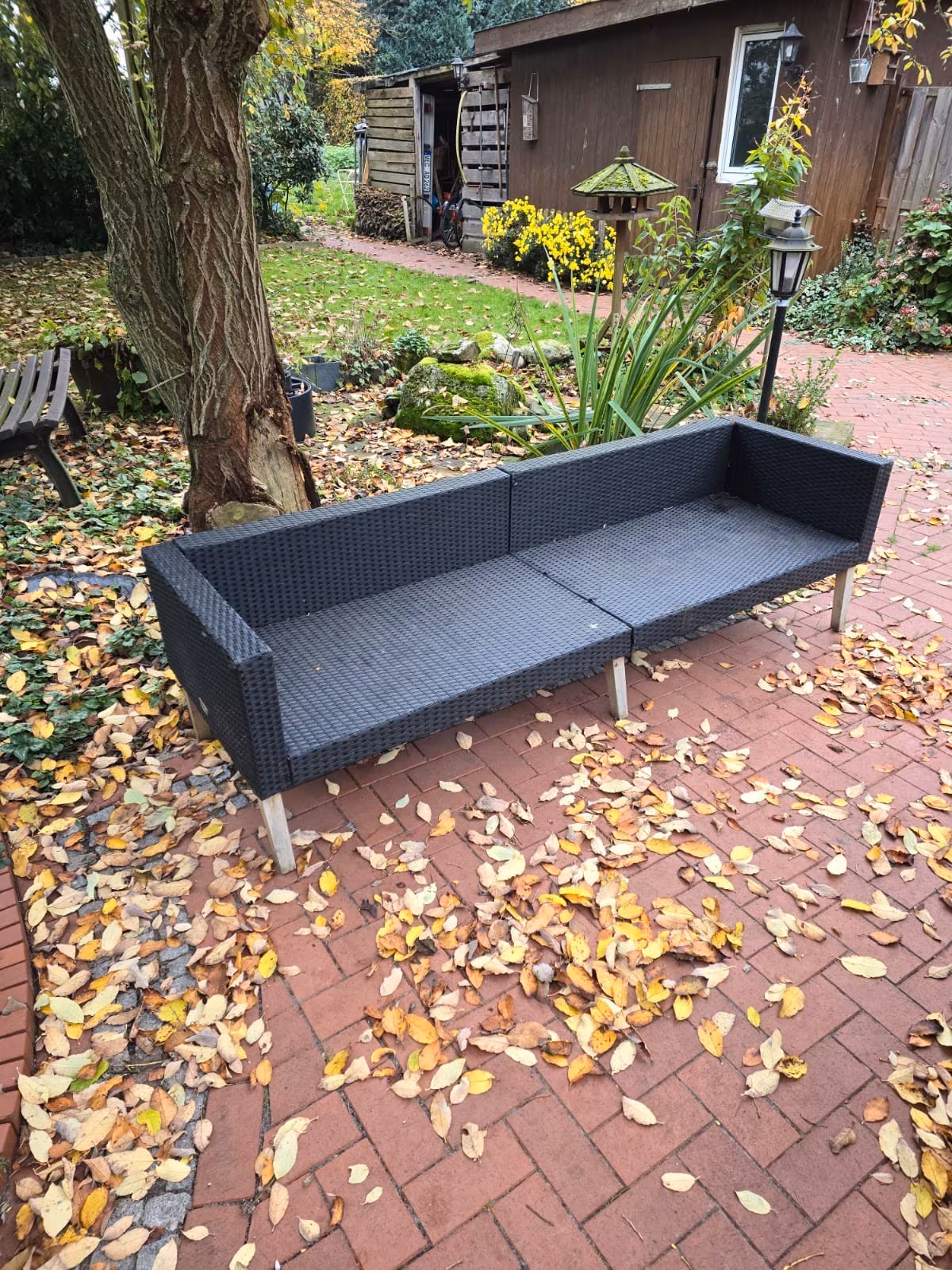 Zu verkaufen stehen hier Gartenmöbel.